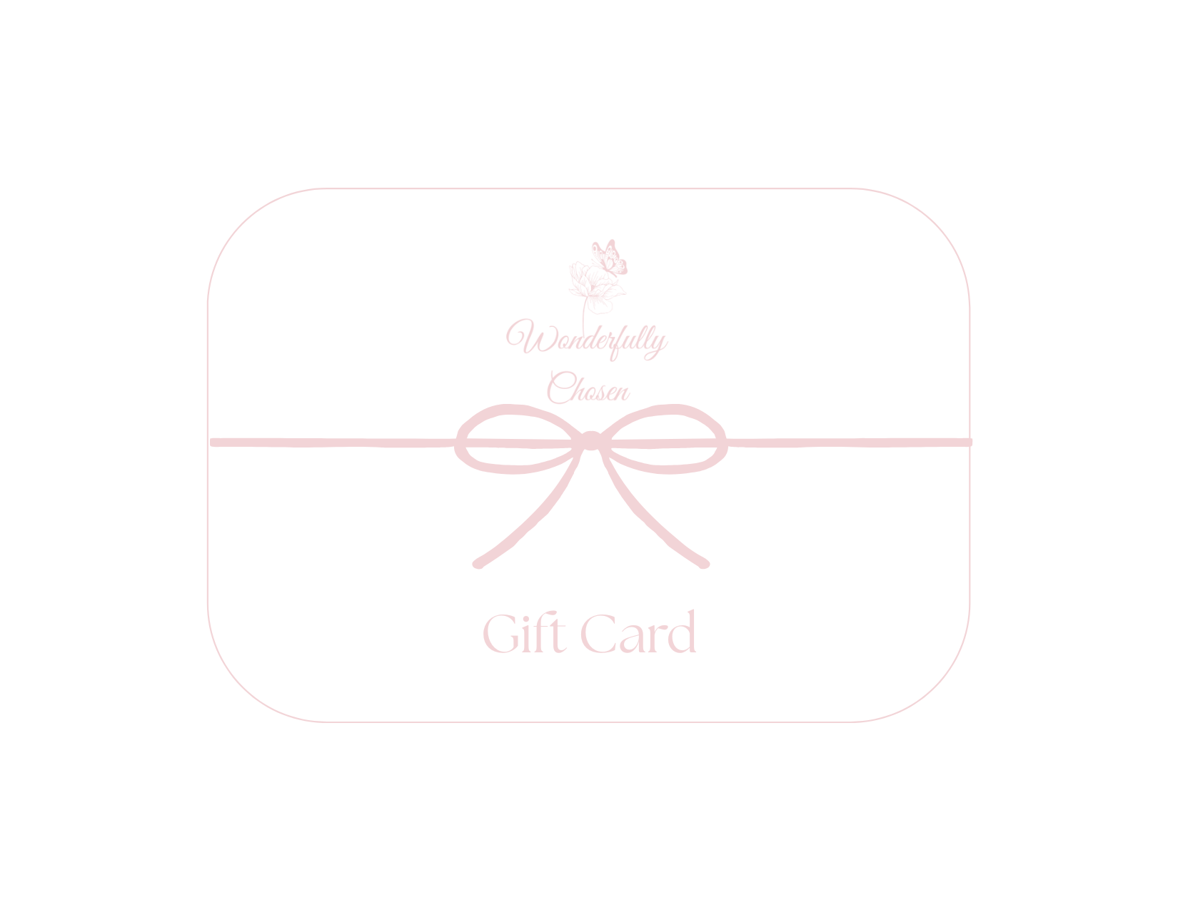 Give the gift of choice with a Wonderfully Chosen Gift Card. Perfect for the special person in your life who deserves something truly meaningful. Available in select amounts, it's a thoughtful way to show you care.